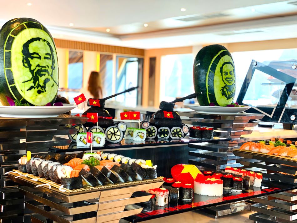 12:30 13:30: Enjoy a premium lunch at Luna Halong Cruise’s luxurious restaurant featuring nearly 100 exquisite dishes from Asian and European cuisines